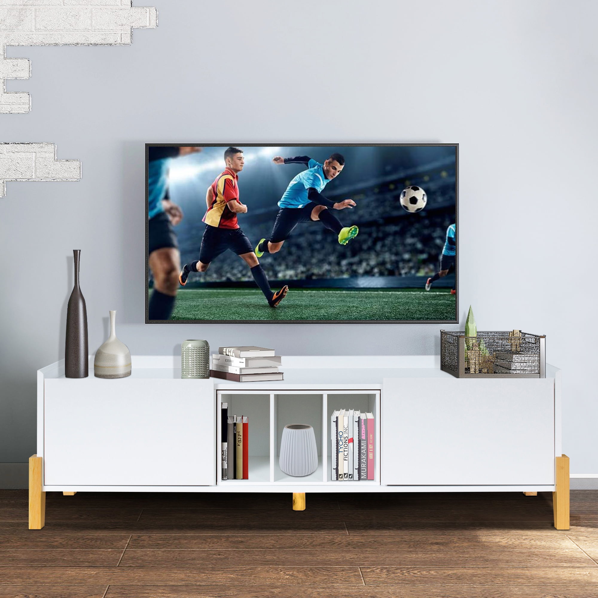 Mid Century Modern Tv Stand For 55 Inch Tv Home Entertainment Center Tv Console With Storage Cabinets And Open Shelves Media Console For Living Room White 50 L 16 W 18 H Walmart Com