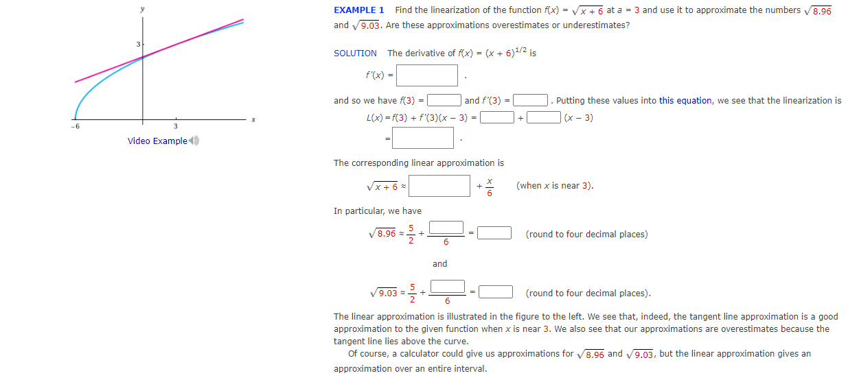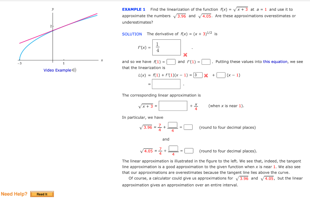 Solved Example 1 Find The Linearization Of The Function F X Vx 5 At A 4 And Use It To Approximate The Numbers V8 95 And V9 01 Are These Approximations Overestimates Or Underestimates