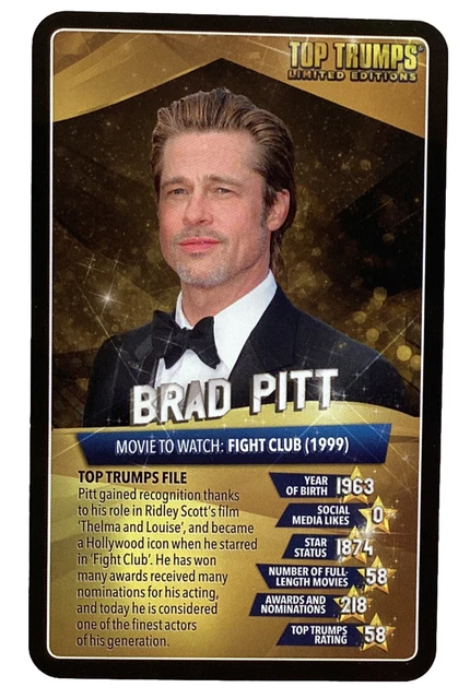 2019 Top Trumps Movie Stars Brad Pitt 9 68 Picclick Au